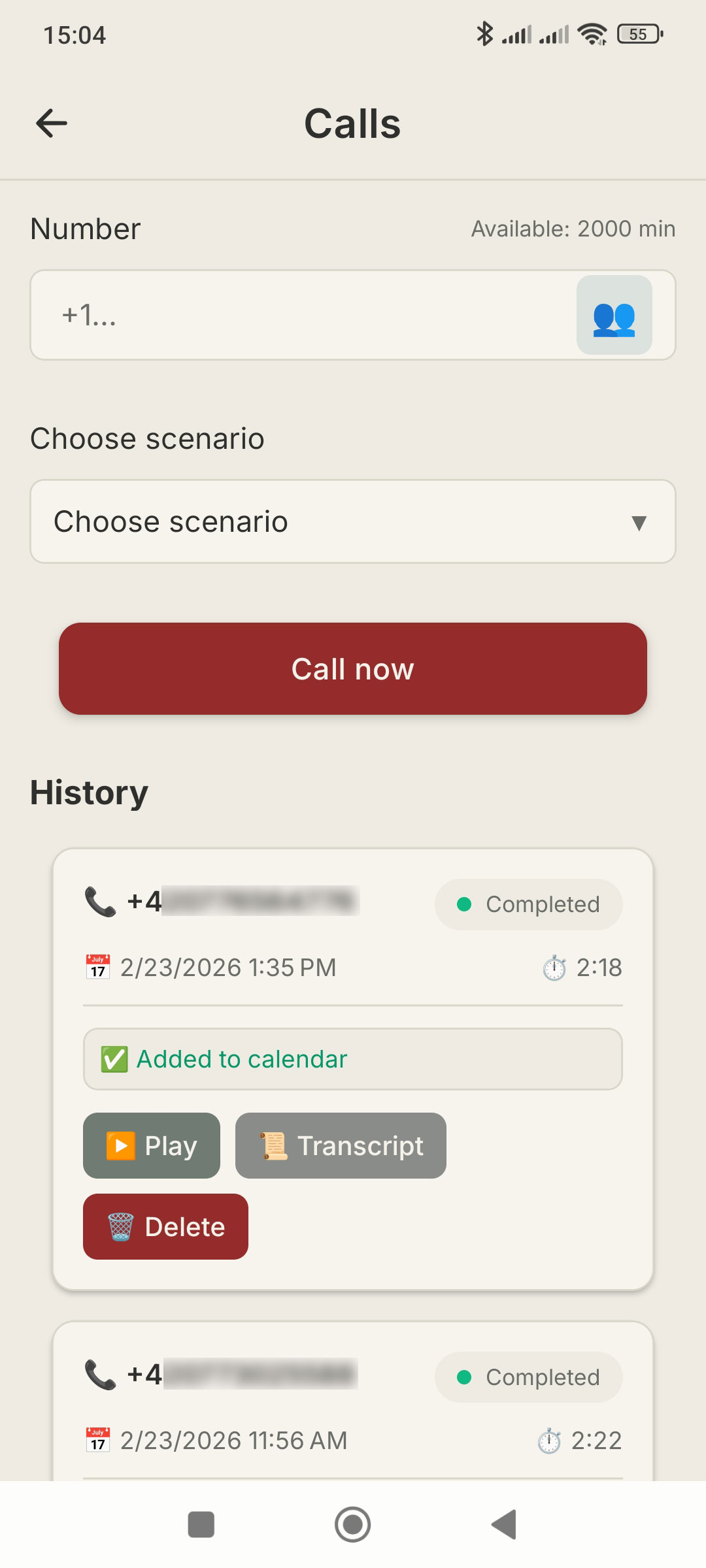 Never worry about "did they understand me?" again. After every call, you get a full transcript translated back into your language. You’ll know exactly what was agreed upon, down to the last detail.
