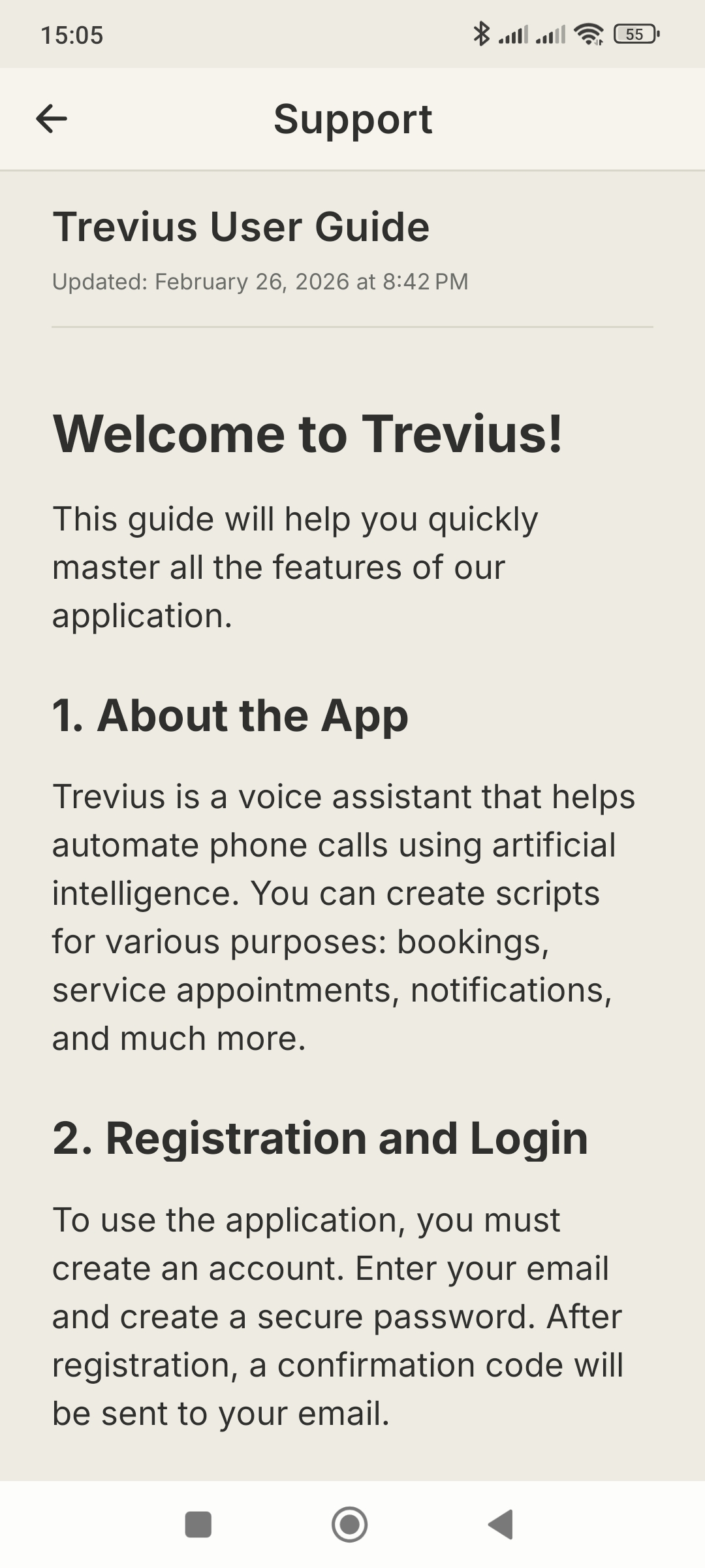 Moving to a new country or traveling abroad shouldn't be a maze of stressful phone calls. Trevius is a smart AI assistant that makes local calls for you, speaks the language fluently, and gets things done while you focus on what matters. Trevius is a mobile application that helps users manage phone calls and automatically schedule events in their Google Calendar.